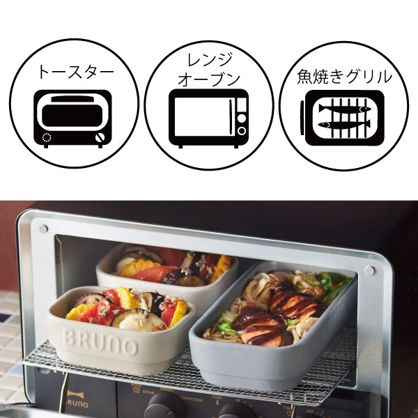 グリルパン グラタン皿 グリルプレート 耐熱皿 スタッキング スクエア 一人用 おしゃれ 北欧 おうちカフェ 食器 ミニ 角 魚焼きグリル オーブン トースター 食洗器対応 時短調理 肉 野菜 陶器 皿 かわいい( BRUNO セラミックトースタークッカー S ブルーノ 3個セット )