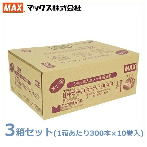 MAX ワイヤ連結釘 300本×30巻(10巻×3箱) 38mm NC38V5-H コンクリート用 換え釘 換えネイル 焼入れメッキ普通釘 マックス くぎ